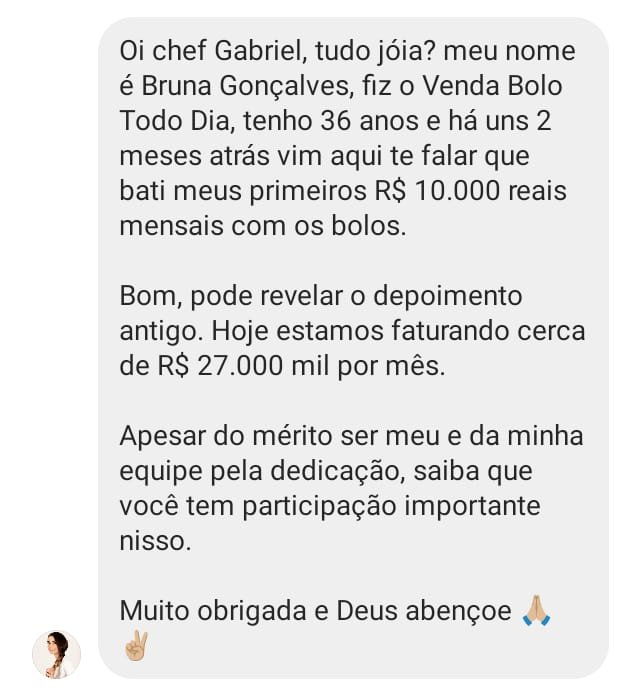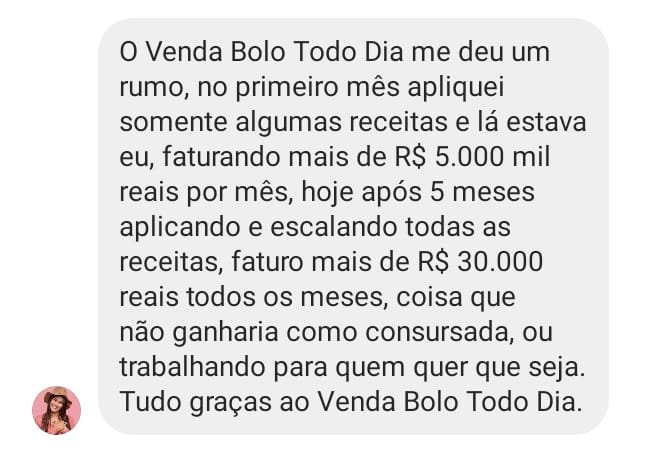 Eu vou te entregar agora um método simples e prático, nada extraordinário, mas super eficaz e comprovado para quem sonha em ter no mínimo uma renda de R$10.000 por mês com bolos artesanais, sem muito esforço, sem sair de casa, perto da sua família, e principalmente, SEM APARECER, vendendo totalmente no automático, e em poucas semanas, você irá se surpreender com o resultado.