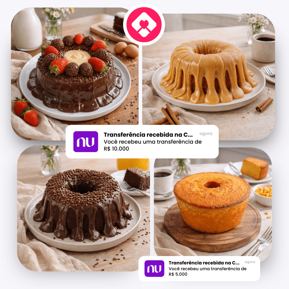Transforme o seu futuro, e o futuro da sua família, através de um negócio altamente lucrativo que vende bolos artesanais todos os dias de forma consistente, que gera uma renda de múltiplos R$10 mil reais todos os meses. Uma jornada única de aprendizado e liberdade, que vai te ajudar a construir uma vida próspera, com liberdade e segurança financeira, que você e sua família tanto merecem tanto merece.